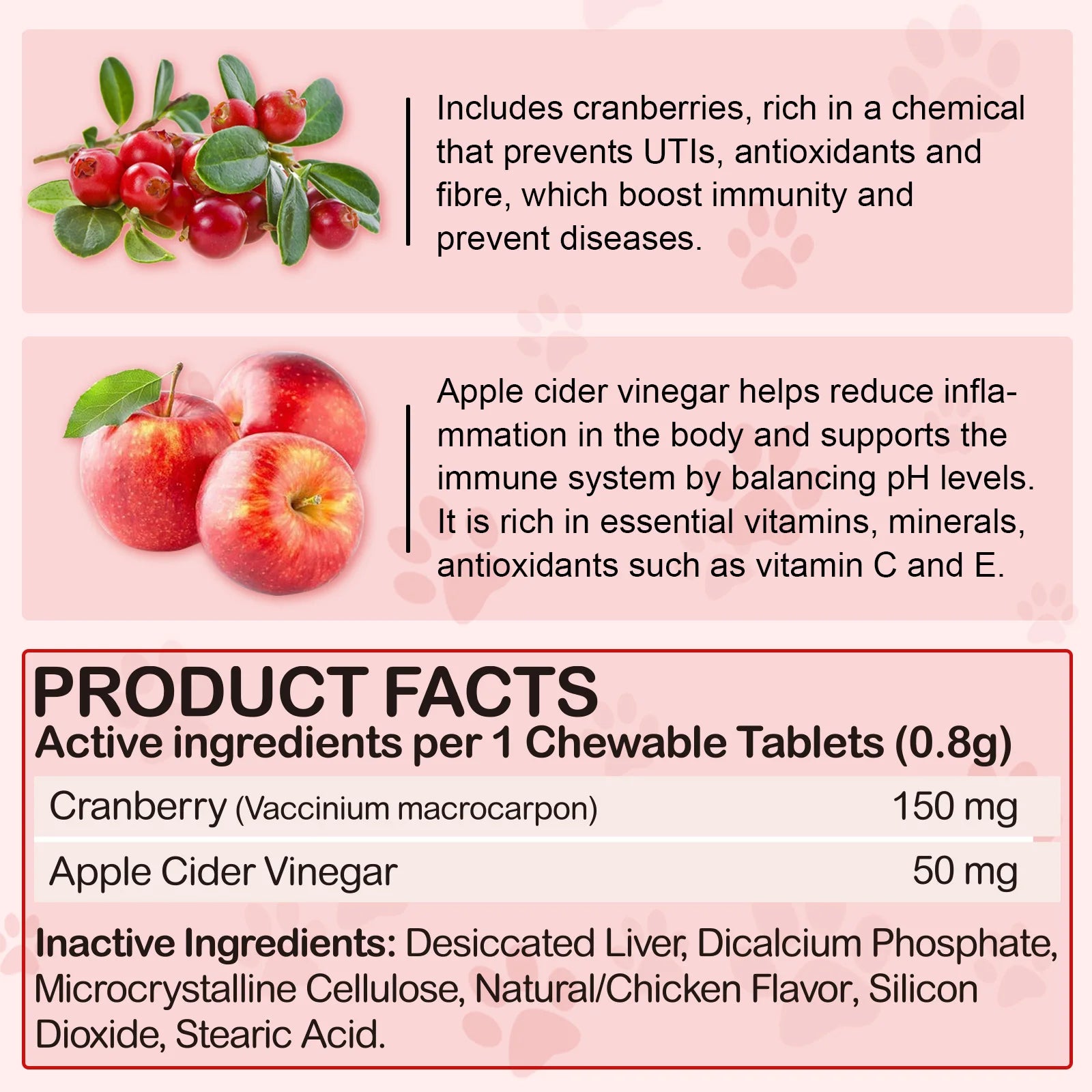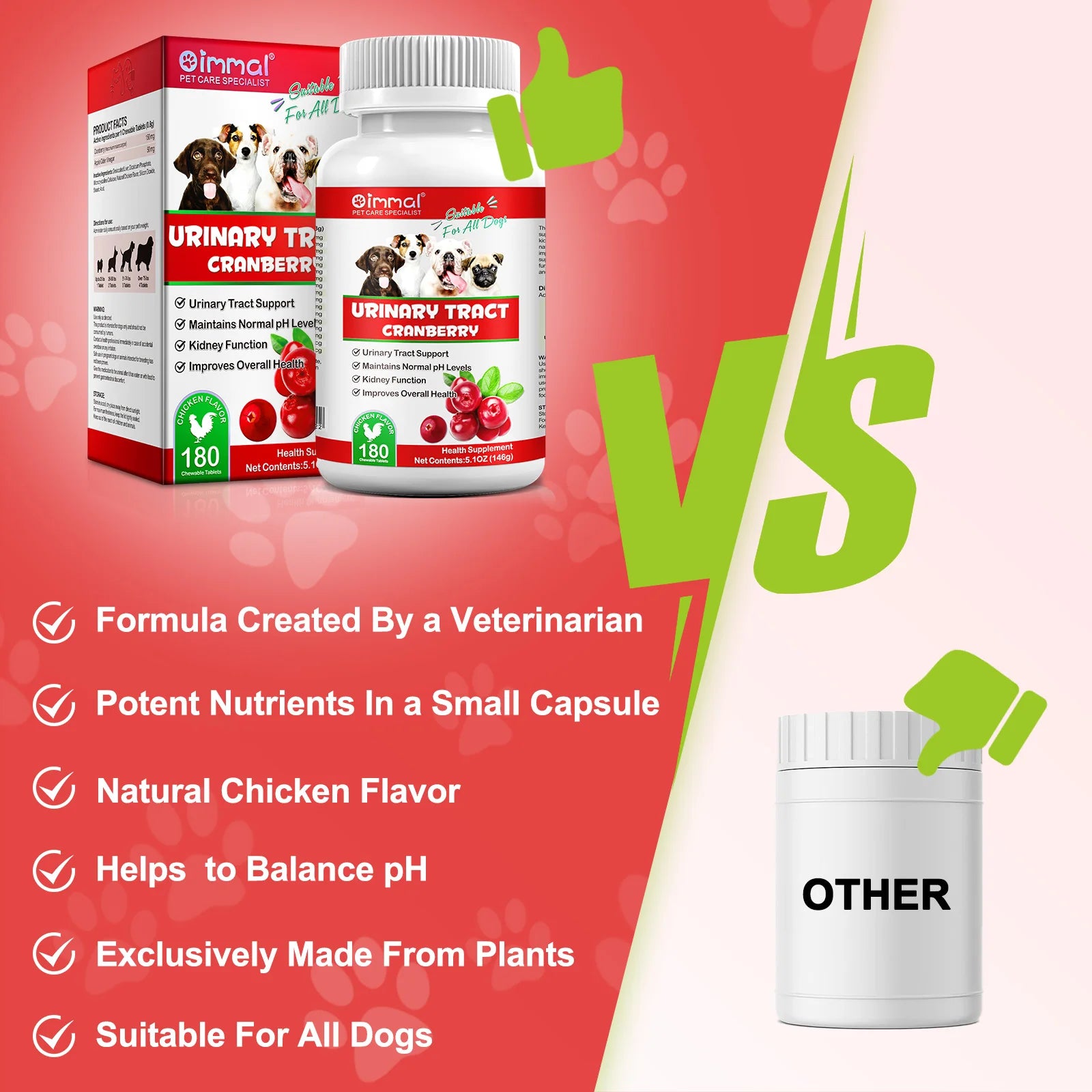 Cranberry Canine Care Optimal Urinary Tract Support for Dogs Enhancing Kidney Function with Chicken Flavor 180 Chewable Tablets