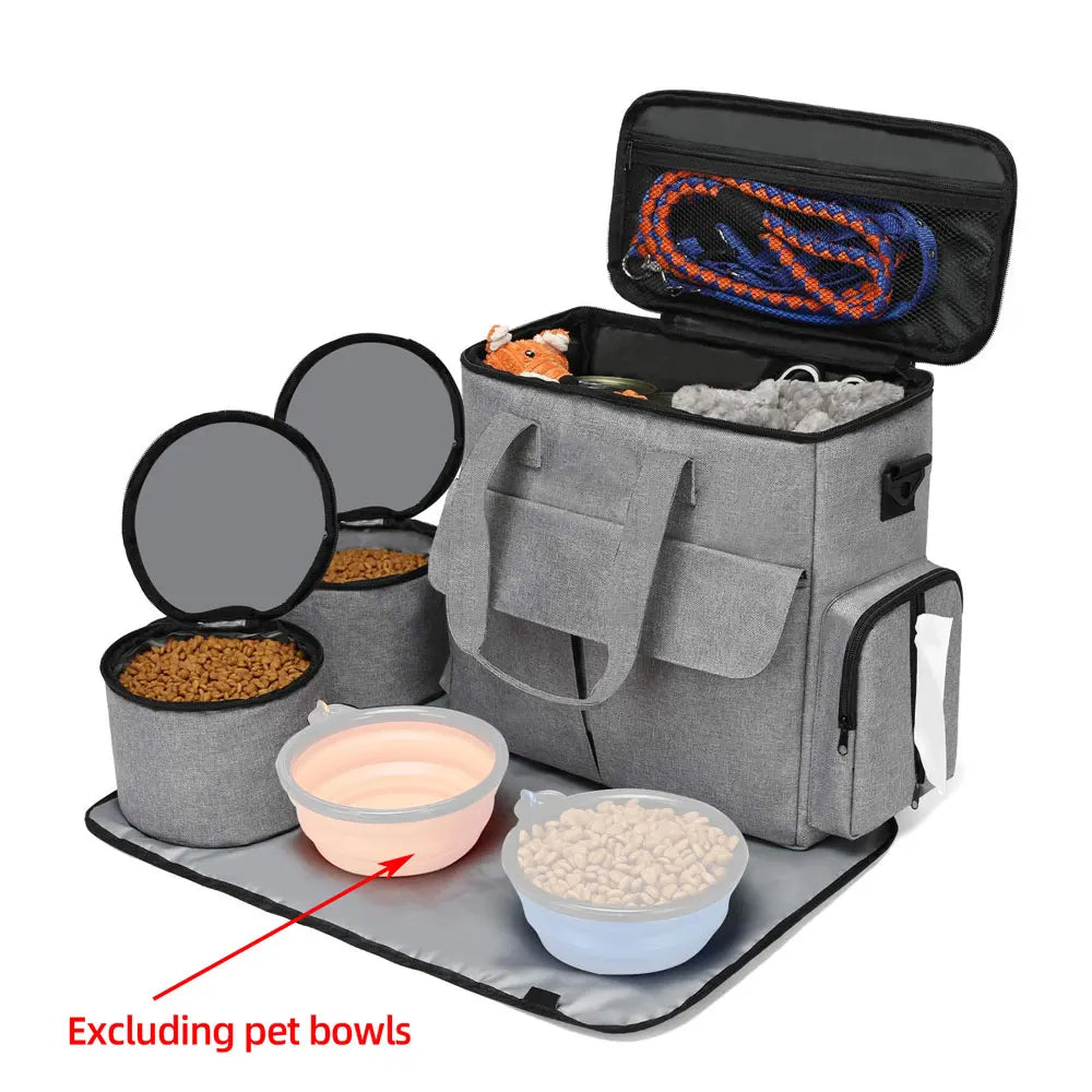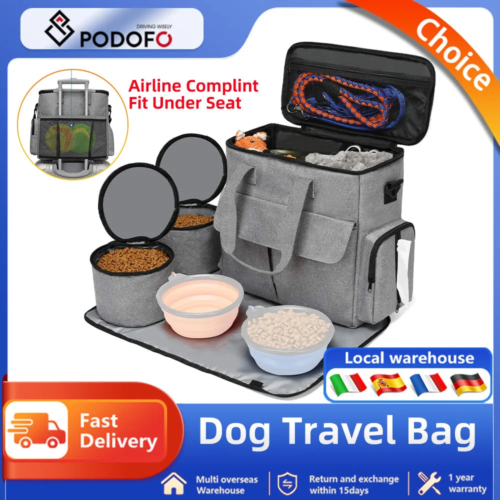 Podofo Weekend Pet Travel Set for Dog and Cat Airline Approved Tote Organizer with 2 Food Storage Containers 2 Collapsible Bowls