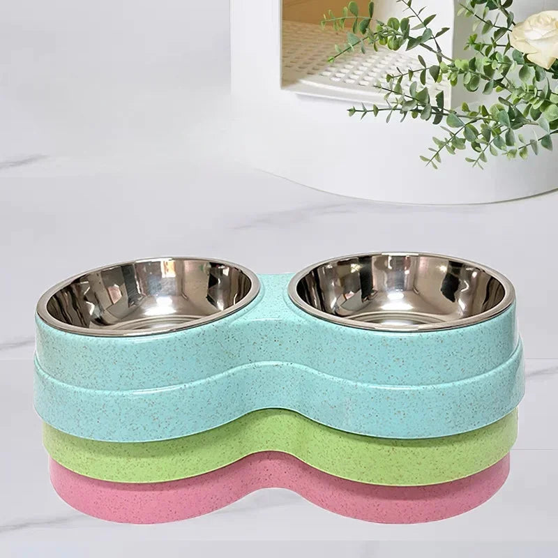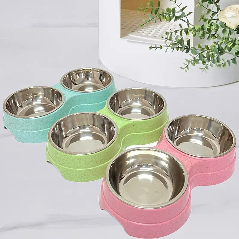 Cat Puppy Feeding Supplies Double Pet Bowls Dog Food Water Feeder Stainless Steel Pet Drinking Dish Feeder Small Dog Accessories