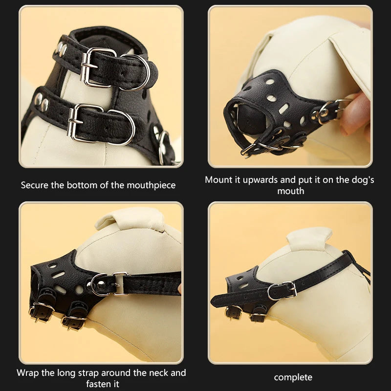 4. Safety and bite prevention: Using this PU leather dog mouth cover can effectively prevent dogs from biting people or other animals while walking outdoors or encountering strangers, providing additional safety protection.
